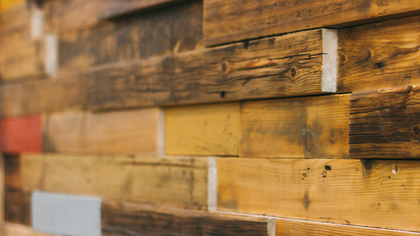 חיפוי הקיר - עשוי סטריפים של עץ בשימוש חוזר בגימורים שונים.
